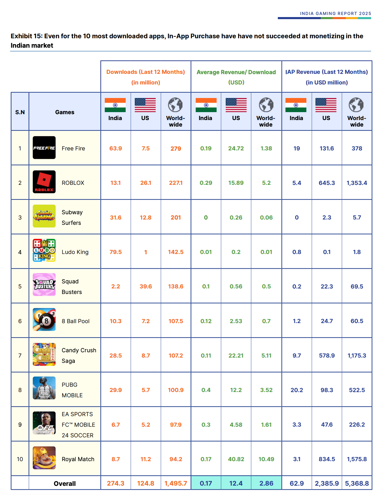 RMG 消失后,整个行业(包括 Dream11 和 MPL)被迫转向 F2P 赛道。虽然 F2P 一直是印度玩家数量最多的板块,但其变现效率长期偏低。禁令却成为新的催化剂:迫使公司探索更高效的广告和 IAP 结合模式,并推动他们从“为印度制造”转向“印度制造,服务全球”。