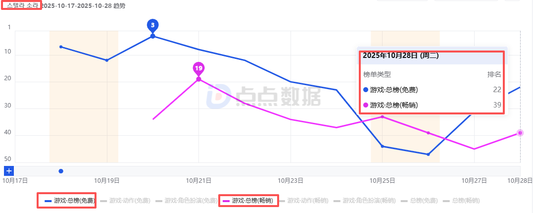 公测至今游戏位于韩国市场 iOS 游戏双榜趋势