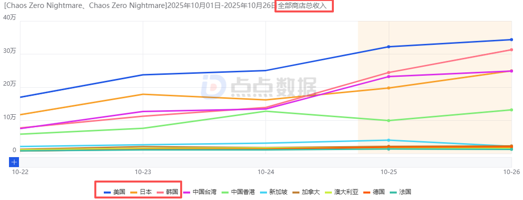 截止目前公测 5 天,该作累计下载量达 181 万,日本、美国、中国台湾以 24.38%、23.92%、11.13% 的占比位列 TOP3,总流水约为 3700 万,美国、日本、韩国占比前三,分别为 25.65%、17.55% 以及 17.19%。