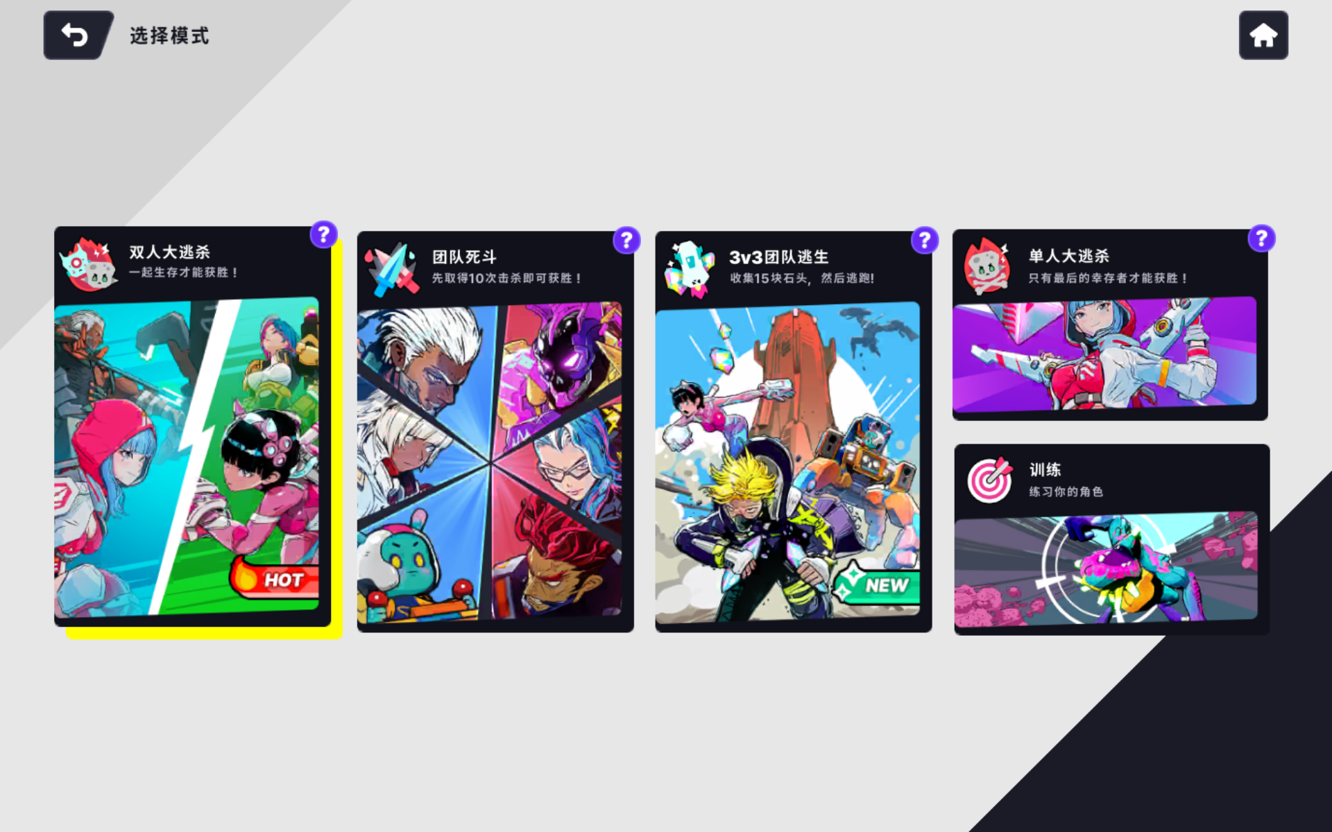 游戏采用最多 20 人同场竞技的经典大逃杀模式,地图设计充满巧思。动态缩圈机制使红色安全区随时间压缩,迫使玩家不断向中心区域移动,频繁的遭遇战与战略转移成为常态;地图中散布的治疗包、装备箱及可破坏掩体则为战斗增添变数,击杀地图中标注的小 Boss 可一次性获得大量经验与稀有道具,往往成为扭转战局的关键节点。每升一级可获得“二选一”属性提升,不同属性搭配可获得不同的效果。部分地图的特殊机关更需玩家灵活应对,进一步提升了战术多样性。