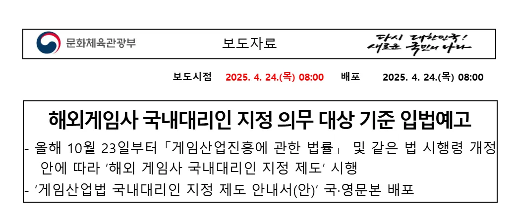 过去一年,韩国游戏监管体系迎来了近年来最重要的一次结构性变化:“海外游戏公司指定国内代理人制度”正式落地。从2024年立法、2025年发布实施细则,到2025年10月23日进入正式执行阶段,这项制度正在全面改变海外游戏在韩国市场的运营方式。