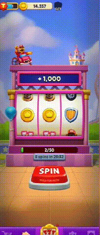 游戏主要分为两个板块,一个是 Slots 板块,即转盘抽奖,并在其中加入一些社交事件,例如抽中三个熊头即可随机窃取某位玩家的财富,抽中三个炸弹或三架飞机即可随机对某位玩家的建筑物发起攻击。