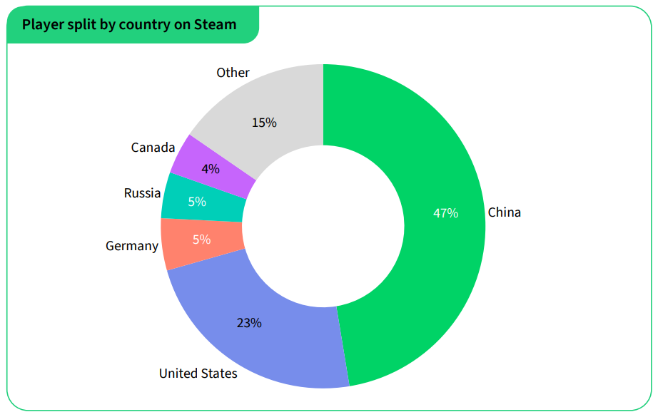 没想到,这次报告的数据还真佐证了“中国人爱魂游”的印象。据 VG Insights 统计,Steam 平台的类魂游戏玩家中,中国玩家占比高达 47%,远远高于第二位的美国玩家(占比 23%)。