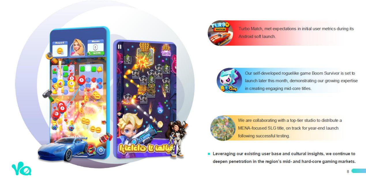 5. 三消新品「Turbo Match」在 8月开始测试;Roguelike 新品「Boom Survivor」计划在 11月下旬上线。公司同时还与头部游戏工作室展开合作,计划在年末发行一款面向中东市场的 SLG 新品。