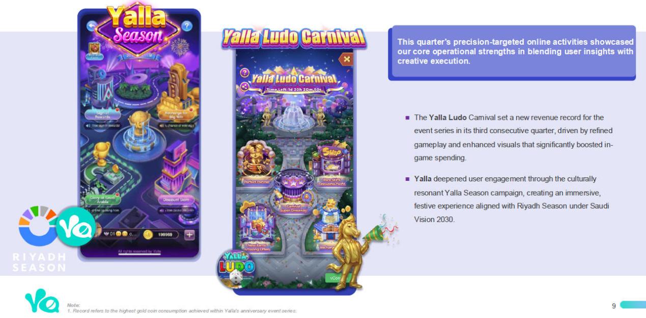 4. 社交、游戏产品继续发力常态化运营,其中「Yalla Ludo」活动“Yalla Ludo Carnival”连续第三个季度刷新限时活动流水新高;