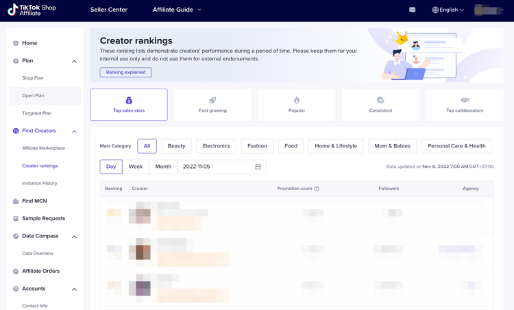 与 Klarna Creator 类似,MarketWatch 释出的截图显示,TikTok 允许卖家查看网红的各项数据,包括粉丝数、MCN、带货分数,以及他们擅长的品类等。品牌方将能更便捷地寻找合作网红,以更标准化的数值来筛选和判断最终合作对象。