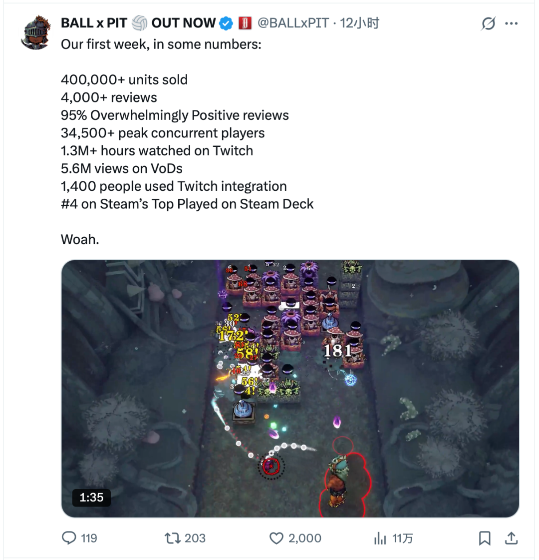 《Ball X Pit》也在最近达到了 40 万的销量