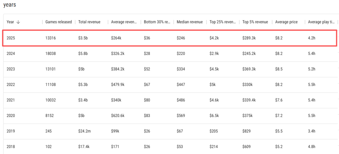 然而,《Soulash》系列开发者 Artur Smiarowski 通过 Gamalytic 数据揭示,今年发布的 1.3 万款新游戏中,竟有 40%(超过 5200 款)游戏收入不足 100 美元,连 Steam 平台 100 美元的上架成本都无法收回。